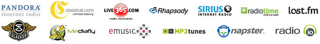 5) Built in support for some of the most widely used internet audio sources including iTunes, Rhapsody, Pandora, Last.FM, Live365, Sirius, etc. Unfortunately the vast majority of these are NOT free services, but they do provide 30 day trials.